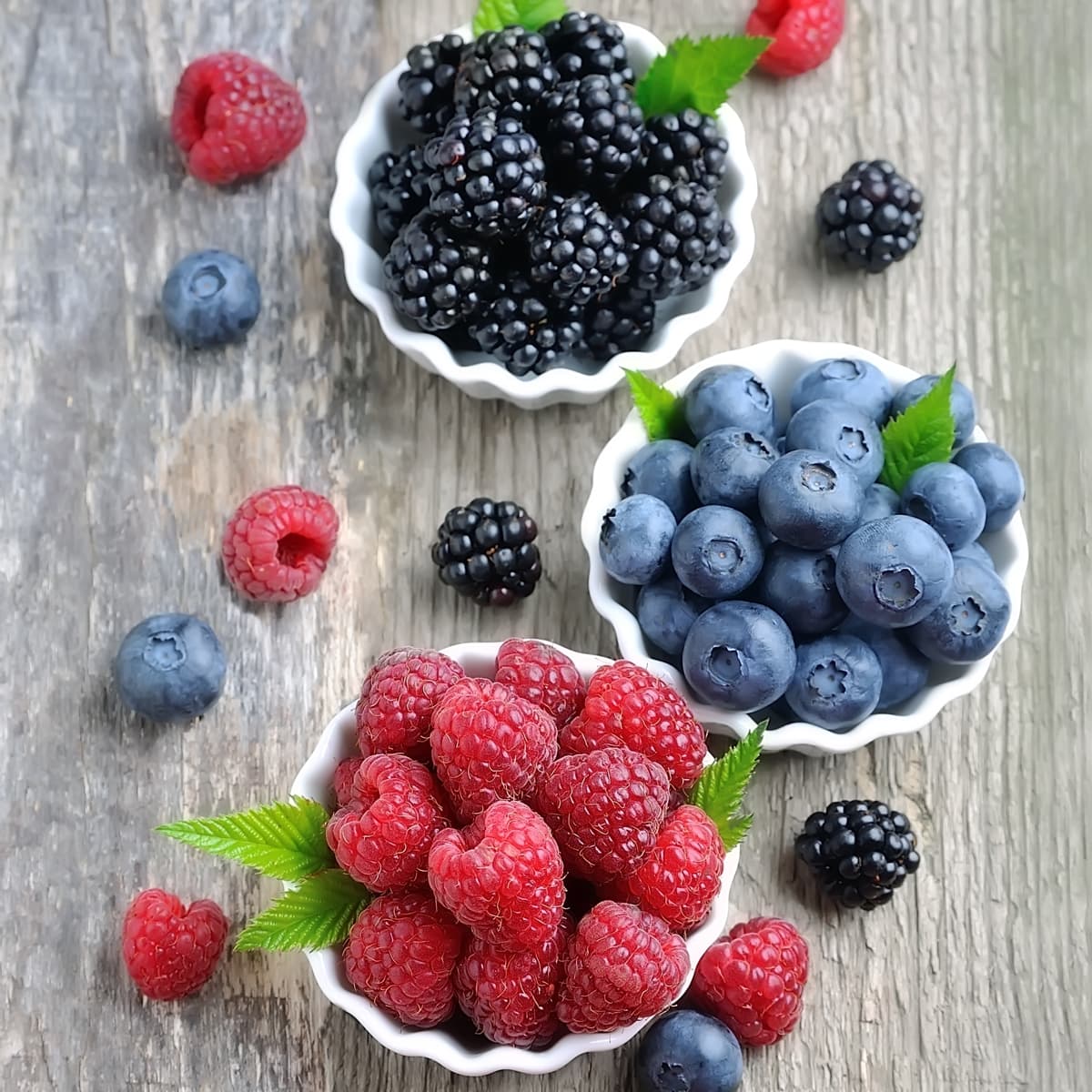 125 gr Frambuesas, 100 gr Arándanos y 75 gr Moras.